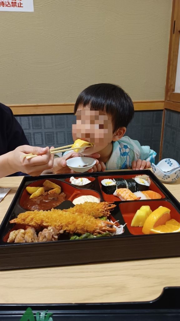 - 12:15 新幹線に乗ってお弁当(息子食べきれず泣く)