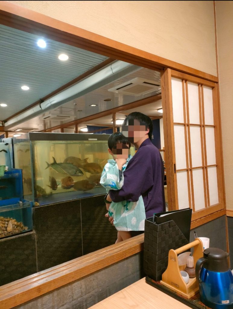 - 8:00 朝食(いけすに息子テンション爆上げ)
