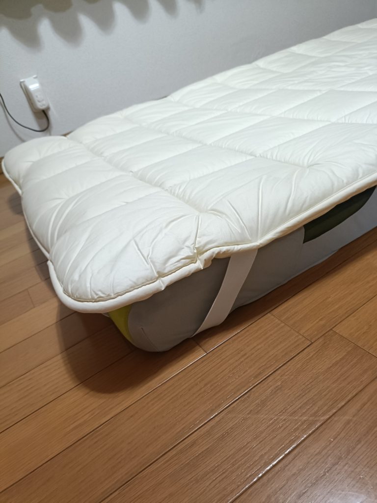 試しにAIR01の上に合い掛け布団を敷いて寝ると、体重がかかってもしっかりクッションになりそうだ。